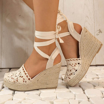 Celia - Elegante gehäkelte Keilabsatzsandalen für Frauen
